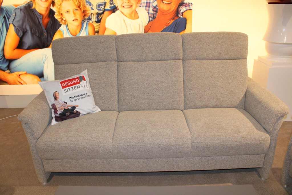 Gruber Polstergarnitur, Modell: Bregenz, Bezug: Campinas beige, Sitzhöhe: 49 cm, Alufuß 3,5 cm, Taschenfederkern, Rücken echt bezogen