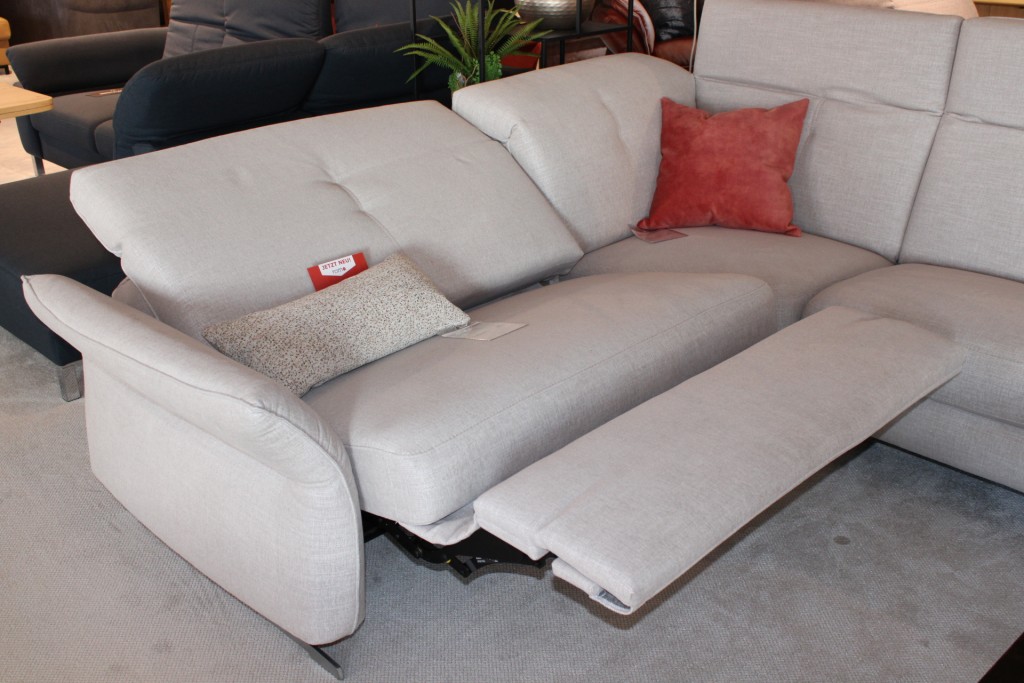 1x Rom Polstergarnitur + 1x Sessel, Modell: Regina / Vinson, Bezug: Escana Naturel, Sitzhöhe: 46 cm, Sitz Viscotex, Fuß Brushed
