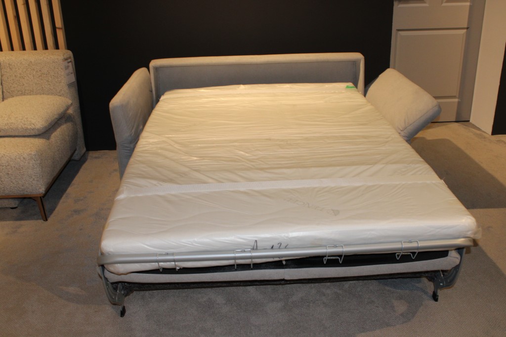 1x Poco Schlafsofa, Modell: Allround Plus, Bezug: Paris silver, Rückenkissen: Joy graphite, Metallfarbig chrom, Vollschaummatratze, Sitzhöhe 44 cm, Stellmaß ca. 198 cm