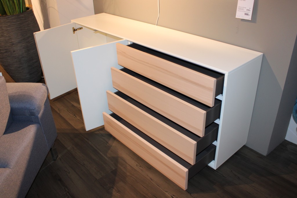 1x RMW Sideboard, Modell: Lennon, in Lack Weiß, Schubladen: KristallbucheStellmaß: 180x 76 x 37 cmDekorationsartikel sind im Preis nicht inbegriffen.Eventuelle Gebrauchsspuren sind im Abholpreis bereits berücksichtigt.
