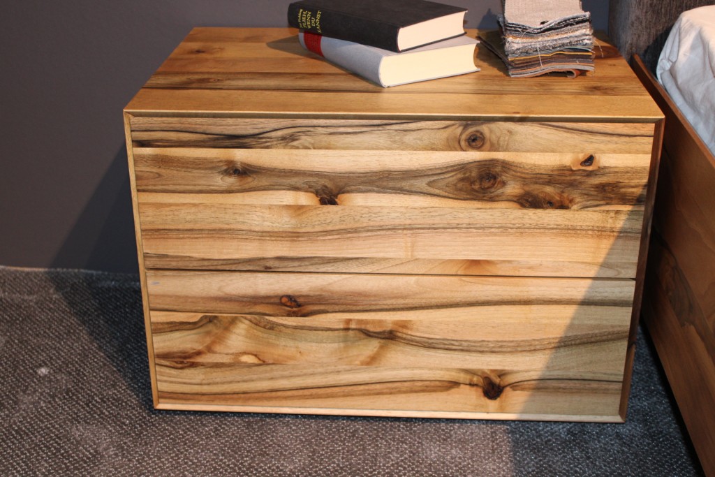 Feria Paul Lindberg Bett + Nachttisch in Nussbaum massiv.