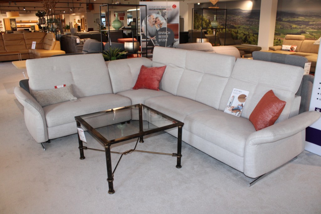 1x Rom Polstergarnitur + 1x Sessel, Modell: Regina / Vinson, Bezug: Escana Naturel, Sitzhöhe: 46 cm, Sitz Viscotex, Fuß Brushed