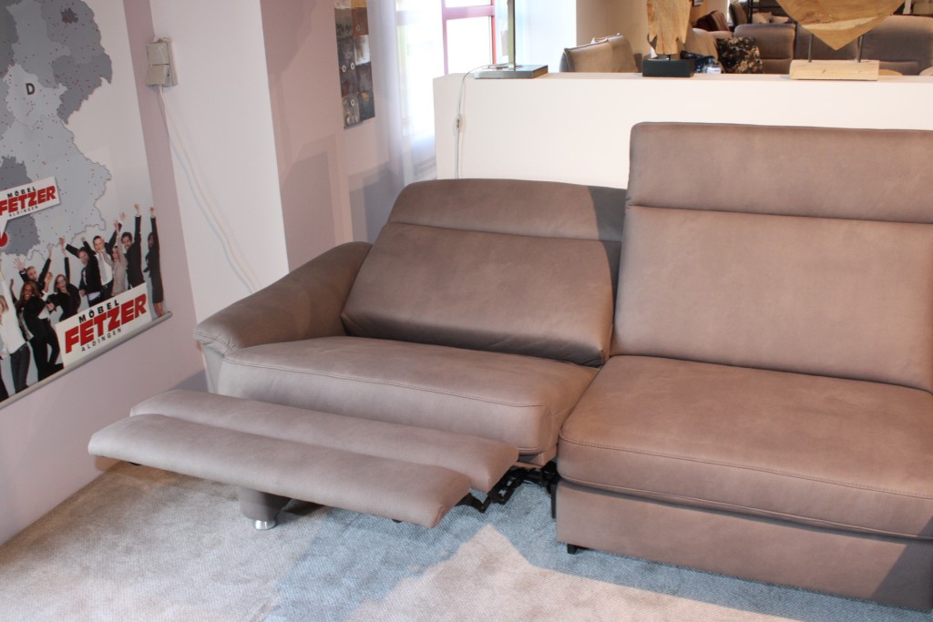 1x Gruber Polstergarnitur, Modell: Carmen, Bezug: Mammut Elefant, Sitzhöhe: 46 cm, Stellmaß: 274 x 166 cm, Sitztiefe: 53 cm.